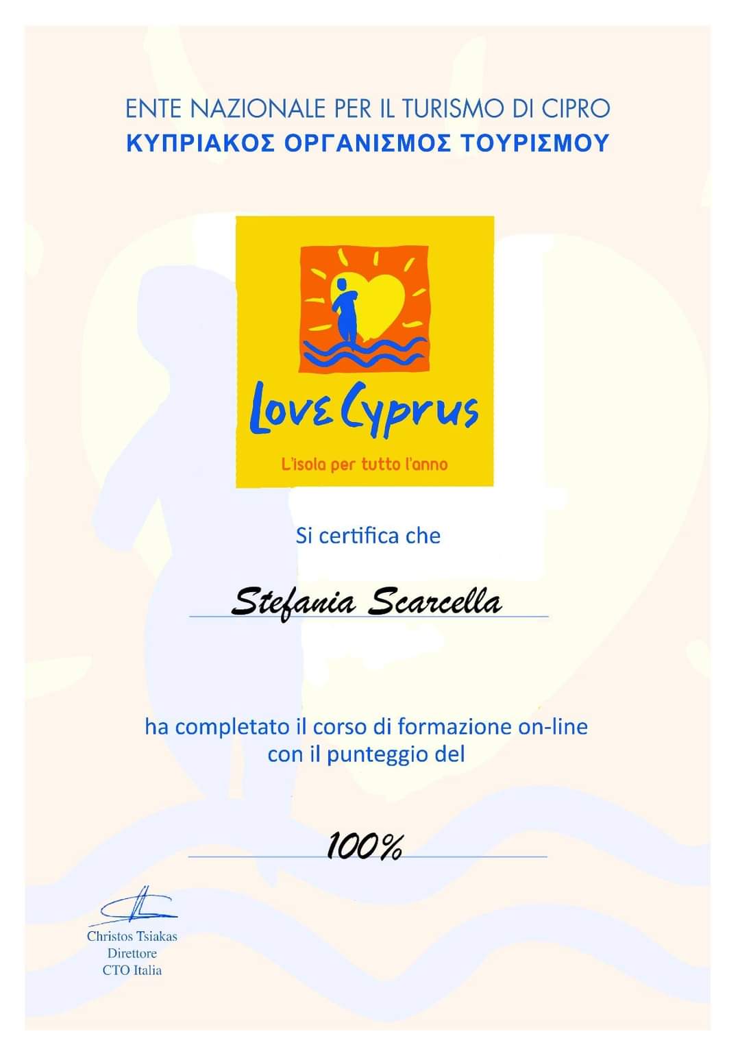 Attestato ENTE NAZIONALE PER IL TURISMO DI CIPRO Formazione Love Cyprus